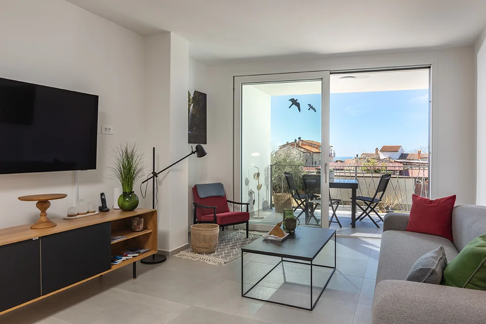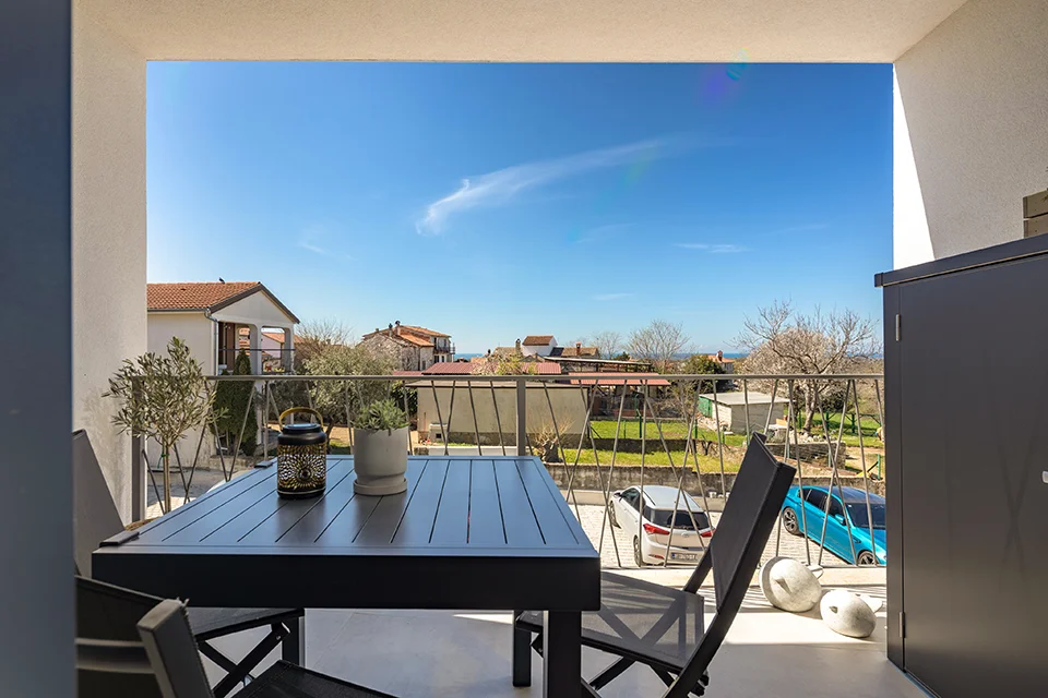 Located in the heart of the peaceful, historic town of Tar, this modern and luxuriously equipped apartment features a spacious balcony with stunning views of the sea and Novigrad.